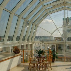 - Stahlkonstruktion mit Eindeckung in Glas, Kunststoff sowie Metall bzw. Holz
